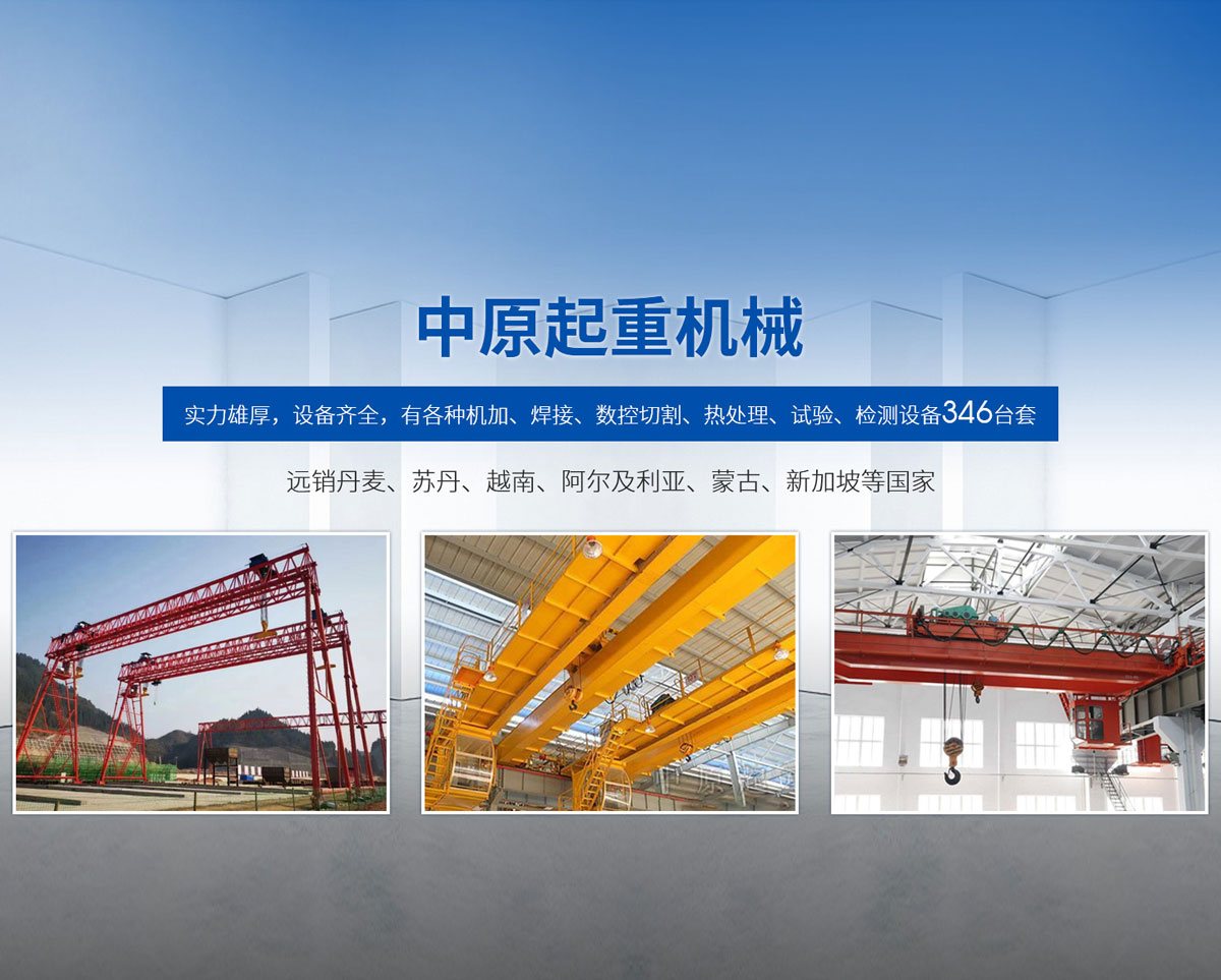 新鄉(xiāng)市中原起重機(jī)械有限公司成立于2000年,地處中原,輻射全國(guó)28個(gè)省市自治區(qū),設(shè)外埠經(jīng)銷(xiāo)處、辦事處268個(gè)。產(chǎn)品行銷(xiāo)工礦、建材、化工、冶金、電力、交通、鐵路、油田、港口等各個(gè)行業(yè)。遠(yuǎn)銷(xiāo)丹麥、蘇丹、越南、阿爾及利亞、蒙古、新加坡等國(guó)家?! 」緦?shí)力雄厚,設(shè)備齊全,有各種機(jī)加、焊接、數(shù)控切割、熱處理、試驗(yàn)、檢測(cè)設(shè)備7臺(tái);有機(jī)加工、熱處理、單、雙梁橋門(mén)機(jī)生產(chǎn)、檢測(cè)、安裝等9個(gè)車(chē)間,研究中心、運(yùn)輸公司、安裝維修服務(wù)公司等機(jī)構(gòu),?  主要產(chǎn)品有:LD型1~20噸電動(dòng)單梁起重機(jī)系列產(chǎn)品;5~600噸通用橋式、門(mén)式、冶金、上旋轉(zhuǎn)下旋轉(zhuǎn)電磁吊、絕緣、抓斗、防爆起重機(jī)系列產(chǎn)品;LH3~100噸葫蘆雙梁系列產(chǎn)品;MH5~32噸葫蘆門(mén)式系列產(chǎn)品;0.5~40噸CD1、MD1鋼絲繩電葫蘆系列產(chǎn)品;HS1型0.5~20噸手動(dòng)葫蘆系列產(chǎn)品;0.5~10噸環(huán)鏈電動(dòng)葫蘆系列;0.5~40噸彎道電動(dòng)葫蘆系列產(chǎn)品;裝卸橋、造船門(mén)機(jī)、架橋機(jī)、鑄造吊和水電大噸位起重機(jī)系列產(chǎn)品?! 」窘⒘藦?qiáng)有力的質(zhì)量保證體系和生產(chǎn)過(guò)程的質(zhì)量控制系統(tǒng),嚴(yán)格執(zhí)行國(guó)家設(shè)計(jì)、生產(chǎn)標(biāo)準(zhǔn),有嚴(yán)格的生產(chǎn)工藝過(guò)程和標(biāo)準(zhǔn),嚴(yán)格的檢驗(yàn)、檢測(cè)標(biāo)準(zhǔn)和手段。
